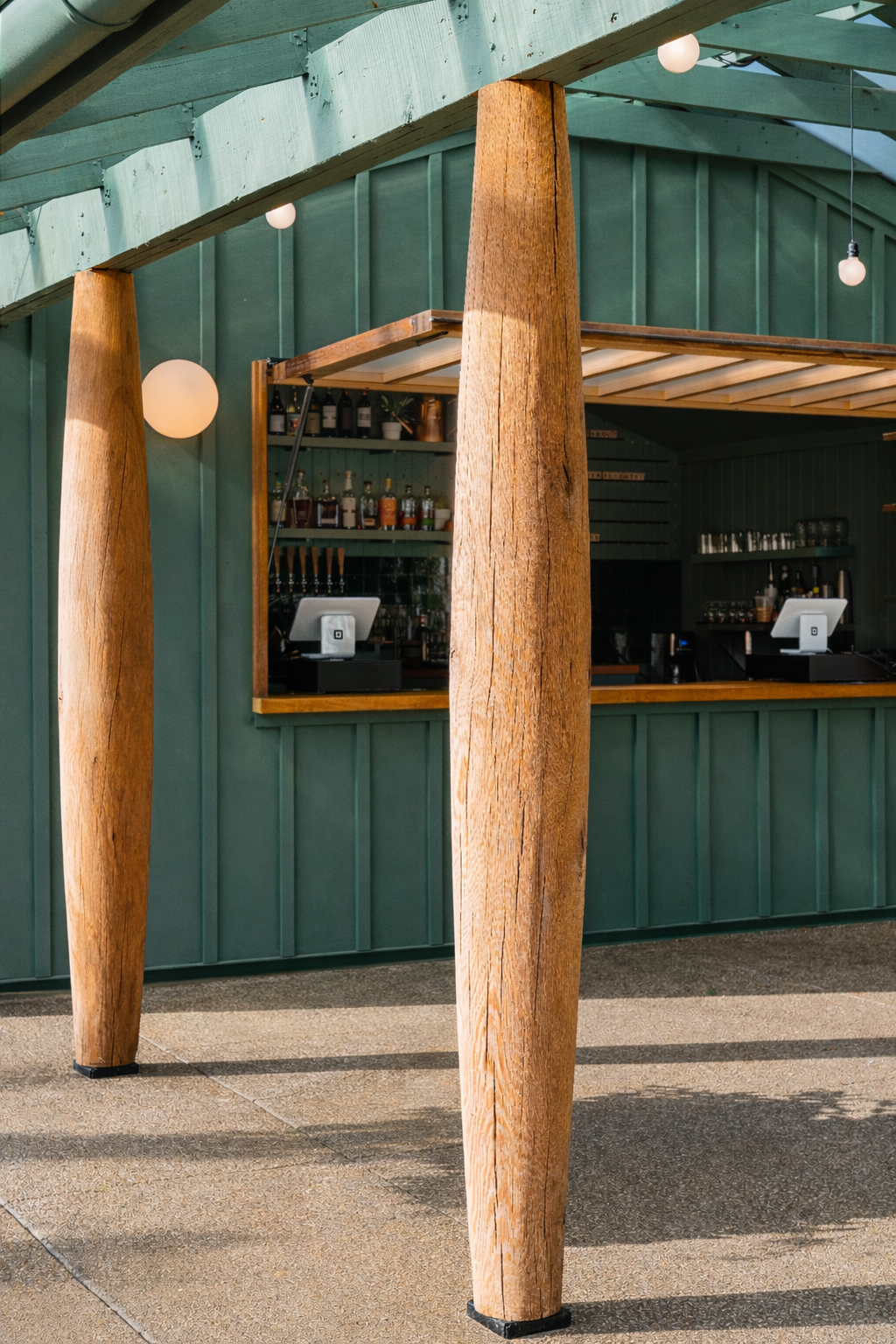 HillGarten punctuates a sense of meander. Nestled within a leisurely landscape, a pointed gabled roof provides a communal respite, propped up by belly columns in the round.