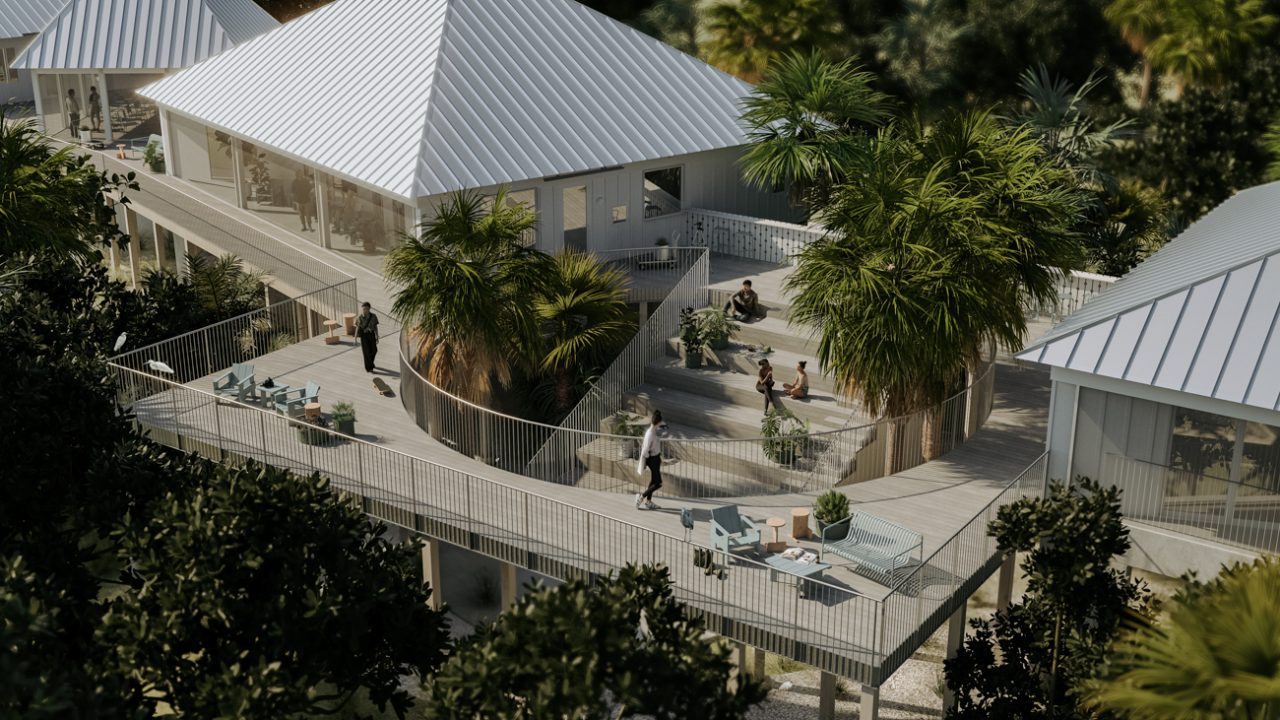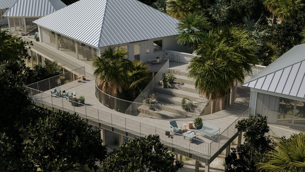 Following hurricane Ian, the new Sanibel-Captiva Conservation Foundation Intern Housing buildings choreograph a collection of barrier island specific resilience strategies to mitigate weather impacts and nestle into a uniquely biodiverse site along the “conservation corridor.”