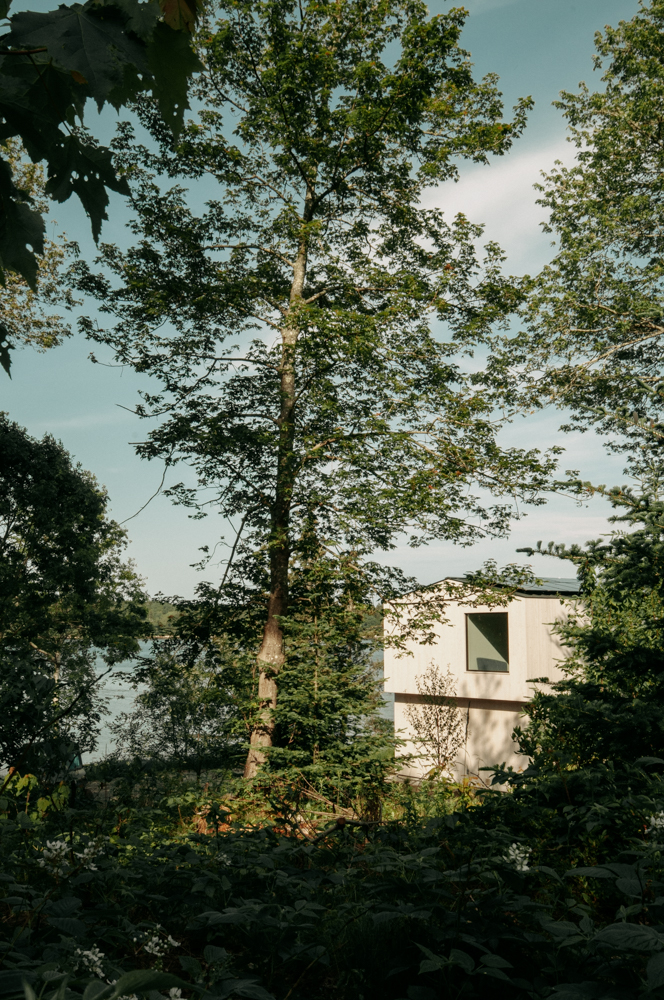 A weathering cedar clad house at the edge of the coast of Maine. Local cedar cladding was sourced and milled just 20 miles from the site.