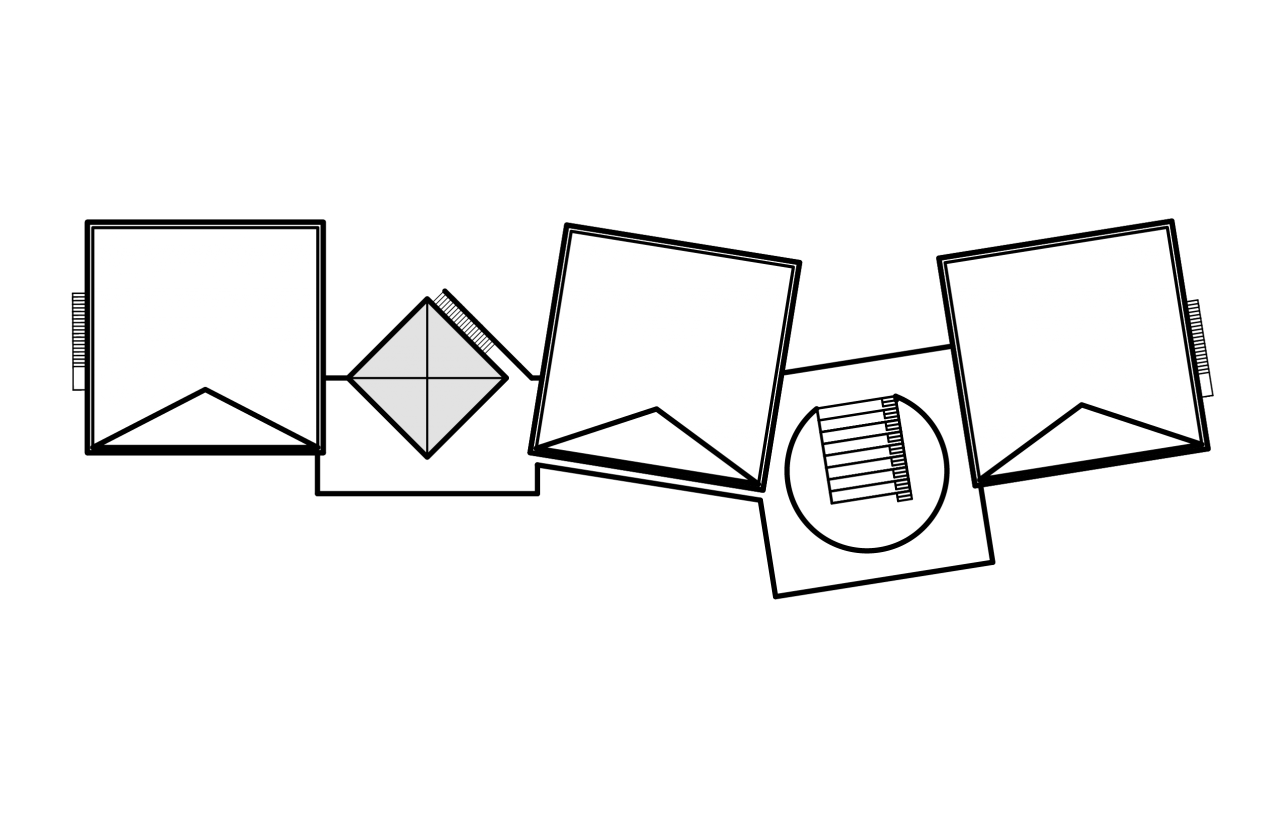 Tilt-Up Pavilion brings a playful approach to generic construction techniques. Five concrete walls are poured on-site and hoisted into place, their exposed edges revealing – layer after layer – the time it took to make them. Cold joints, pick points, and structural embeds become central actors, as the construction process reveals its theatrical leanings.